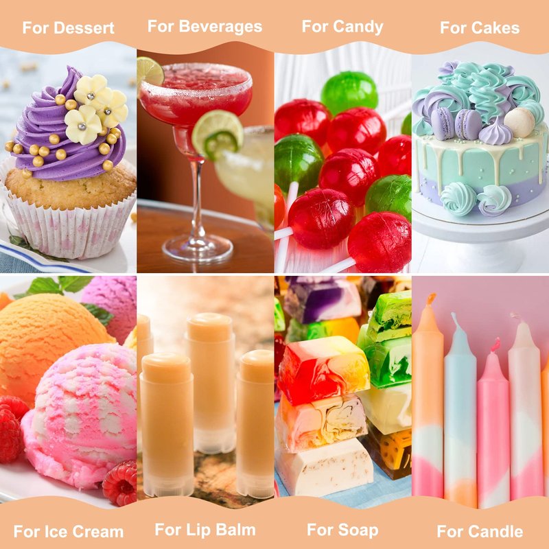 - Reliable & Widely Used - Upgraded technology makes it soluble in water and oil. flavoring oil for candy making, beverages, ice cream, coffee, milk, candy coating, hard candy, baking, cakes, desserts. Also great for lip gloss, lipstick, cosmetics, air fresheners, DIY slime, candles, etc. Various needs can be met.
