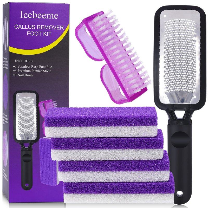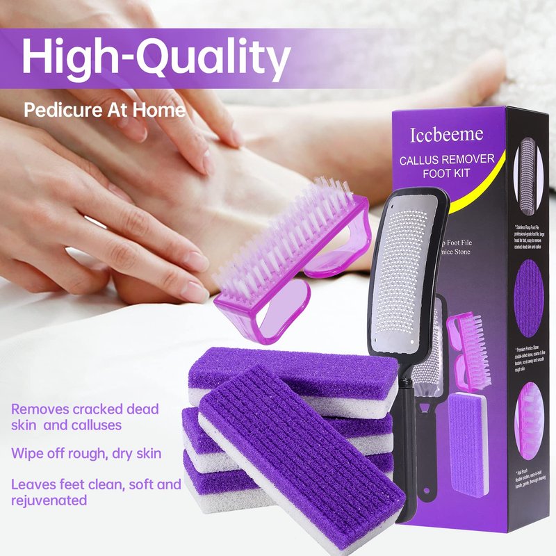 - 💅Professional Foot Care Kit: Our callus removal set includes a stainless pedicure rasp foot file, 4 premium pumice stones and 1 nail brush to effectively rejuvenate your rough, calloused feet for your enjoyment at home Spa like experience.
