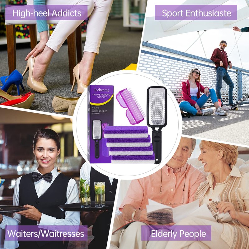 - 👠Make Your Feet Smooth and Soft: This callus remover set is suitable for all skin types, perfect for high heel fans, seniors, sports enthusiasts, teachers, waiters, etc. It can be used on wet or dry feet to restore your feet to soft and smooth .