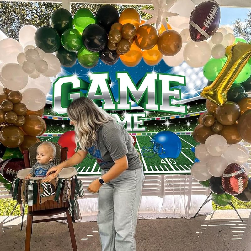 - Football Backdrop - The football field backdrop is printed with football field, football,yard numbers pattern, Dazzling words"GAME TIME" and football player helmet, brightly colored and eye-catching, bring a lively atmosphere to football spectator, leave all people a unforgettable memories.