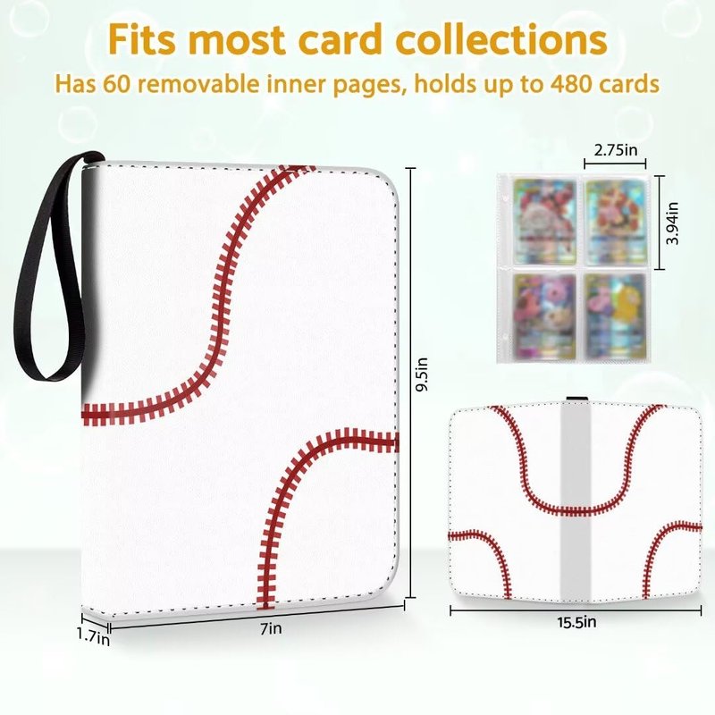 Football Card Binder 480 Pockets with Removable Sleeves, Football Card Holder with Zipper, Portable Trading Card Binder for Standard Sized Cards Album