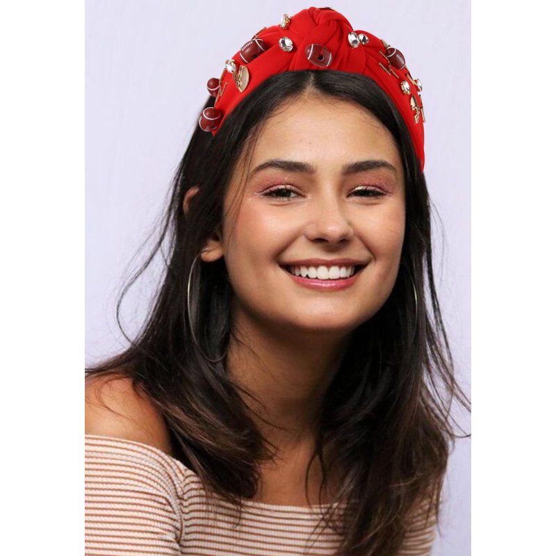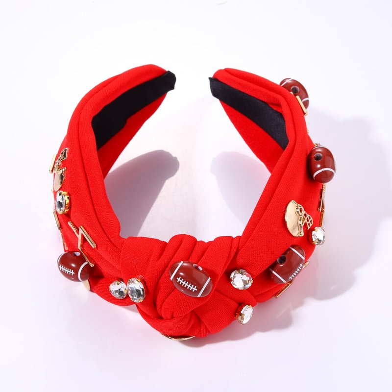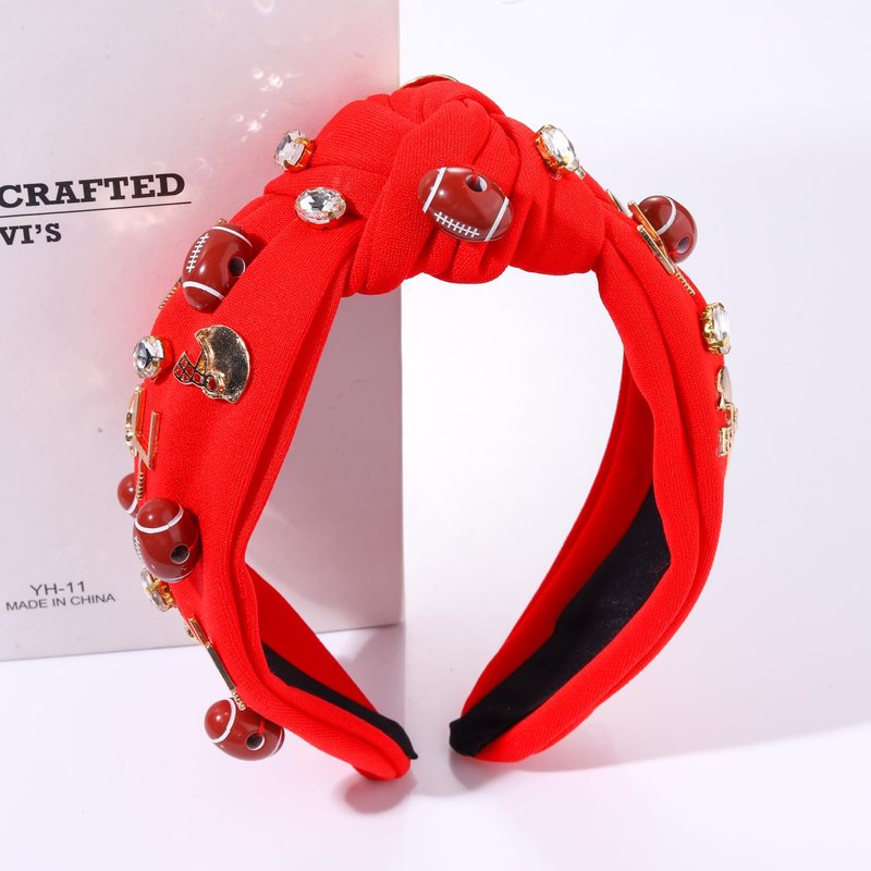 - Fashion Football Knot Headband :Want to show your team spirit without breaking the bank? Look no further than our Football Headband! This stylish fabric knotted headband has a cute football-knot design adorned with glittery rhinestones and beaded football accents. So you can always look fashionable and show off your loyalty. Go team! It can be worn during athletic events or as a fashion statement.