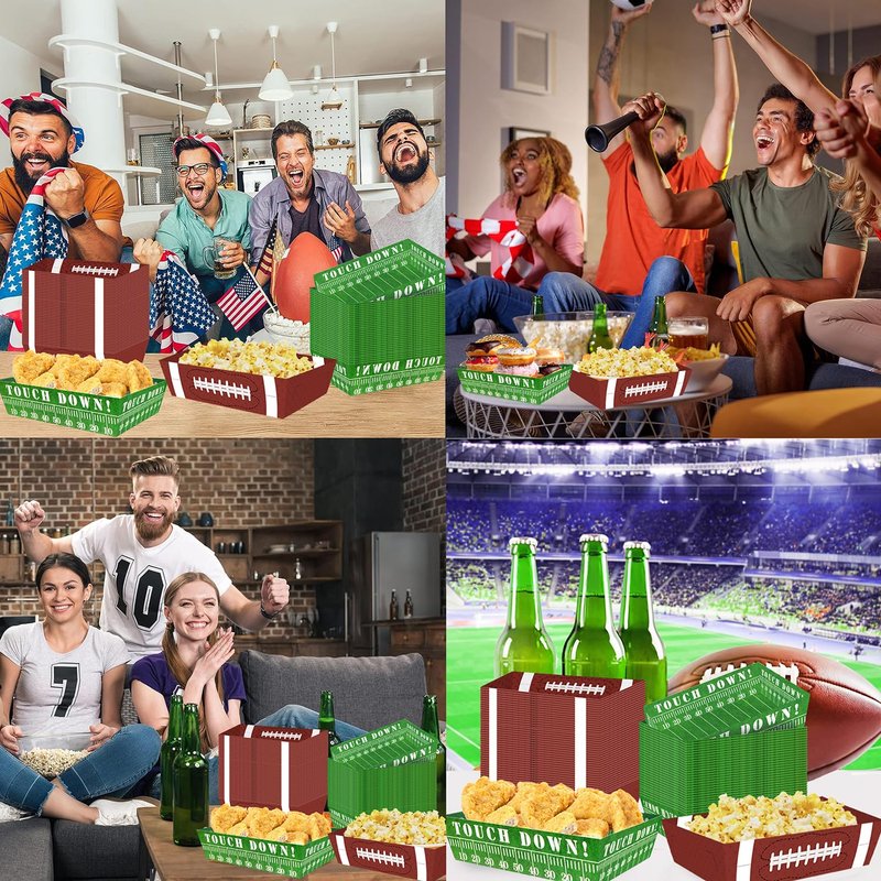 - Food Grade & Non-toxic Material: these football party paper food tray are made of thick cardboard, double sided printed and laminated, waterproof and oil-resistant, so you can enjoy your snacks without worrying about spills or oil stains;