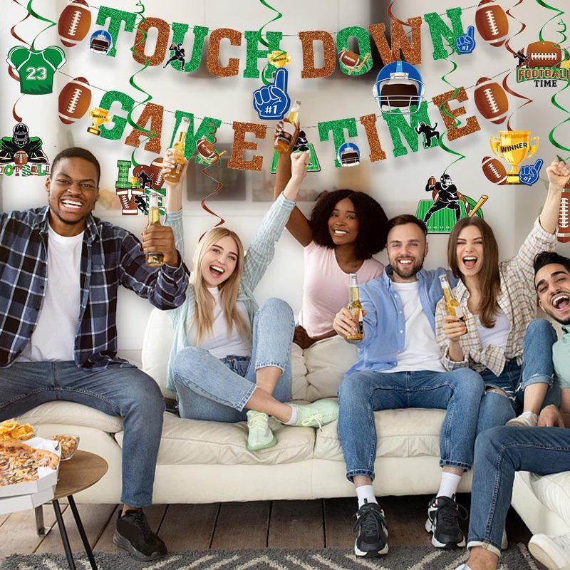 - ALL-IN-ONE FOOTBALL PARTY KIT - Includes a game time banner, a touchdown banner, 10 swirl cutouts and 10 spiral streamers. With our value set, you can beautifully decorate your football party without needing additional football wall decor.