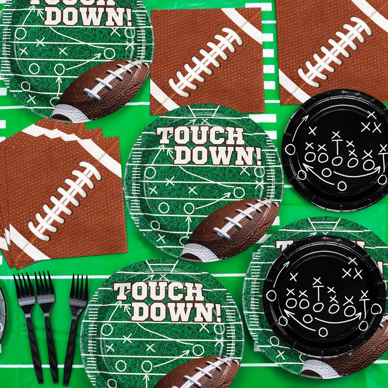 - 【Perfect Football Formation Tactics Design】On the basis of football, we chose the classical football-themed element to design “Touch Down” tableware, and tablecloth. These exciting football decorations are sure to be a hit will all your guests, kids who are interested in sports themes.