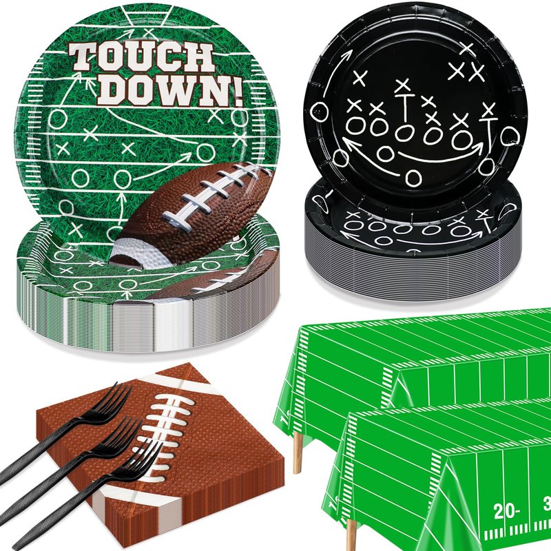 - 【Perfect Football Formation Tactics Design】On the basis of football, we chose the classical football-themed element to design “Touch Down” tableware, and tablecloth. These exciting football decorations are sure to be a hit will all your guests, kids who are interested in sports themes.