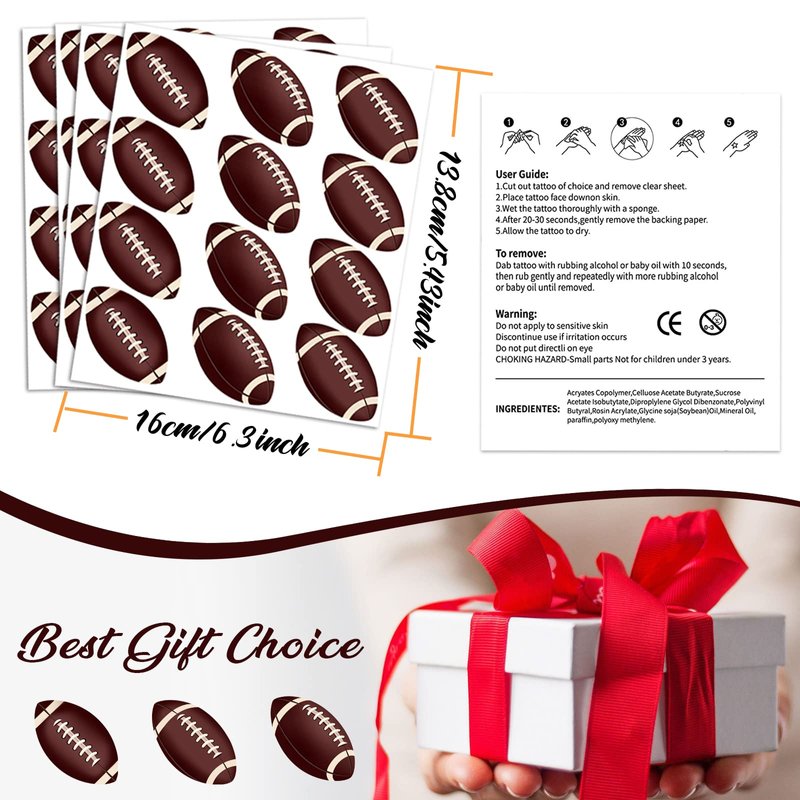 - Friendly to Skin Football party decorations,our temporary tattoos have been put through rigorous party testing and are 100% guaranteed to last all day,Non-toxic, harmless and tasteless, the tattoos do not cause irritation