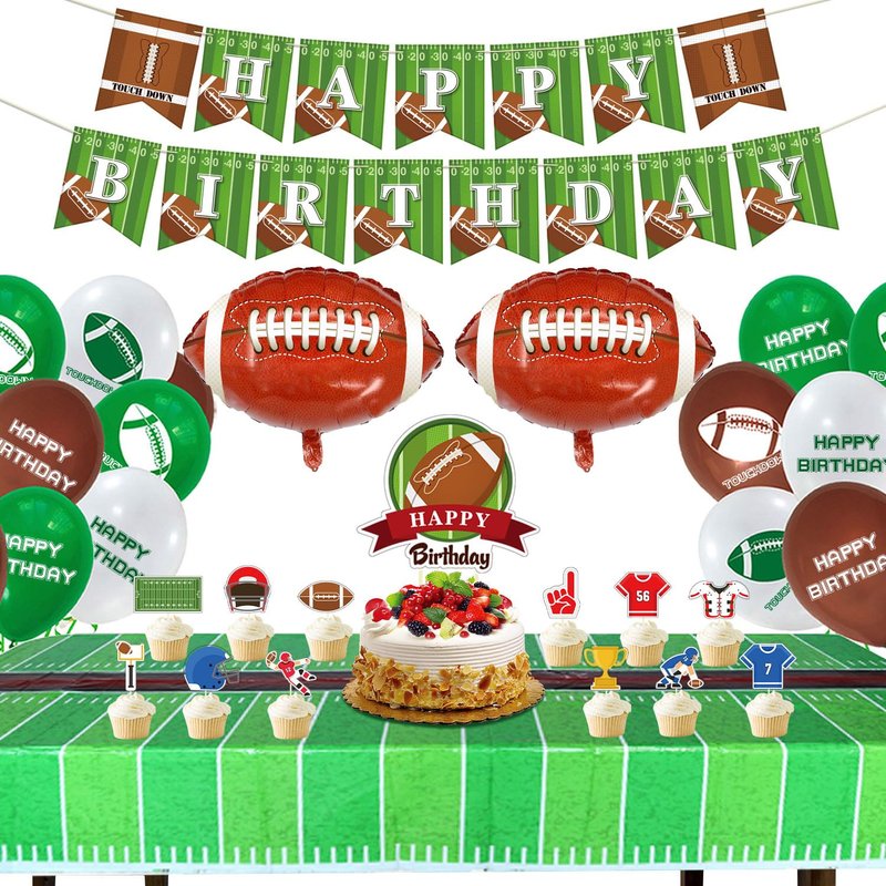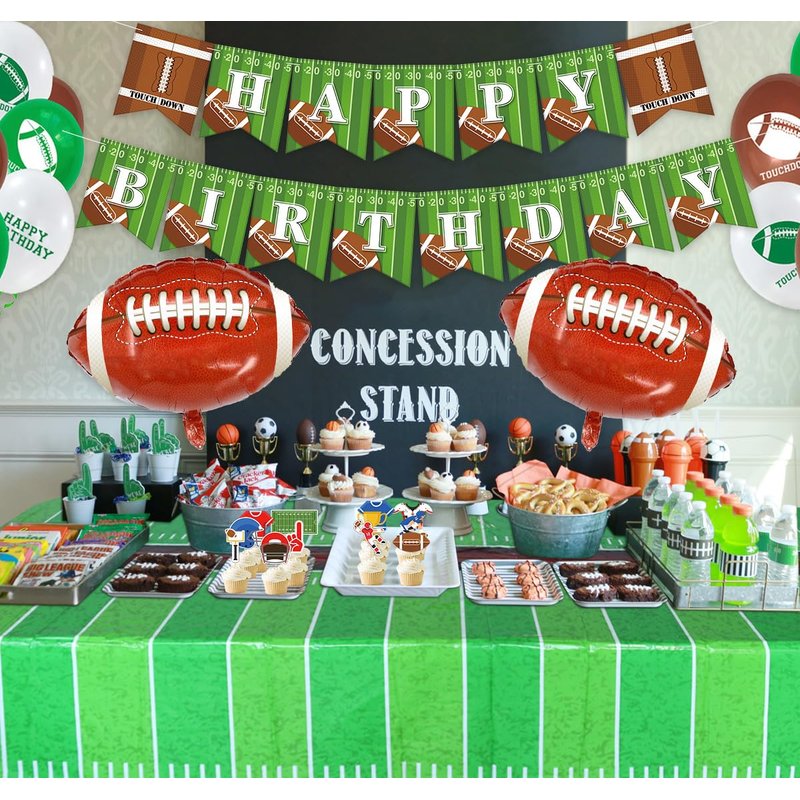 Football Theme Party Supplies - Including HAPPY BIRTHDAY Banner, Football Foil Balloons, Cake Topper, Tablecloth, Balloons for Game Day, and Football Birthday party Decorations