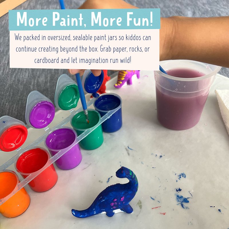 • Designed with kids in mind – As a family, we do a lot of crafts and not all are fun for adults. Our set includes the perfect amount of three durable figurines to hold kids' attention, a large cup for quick brush rinsing, oversized paint, and extra brushes to make set up and clean up easy on parents. We designed figurines with a simple, clean design for a classic look that encourages creativity and imagination.