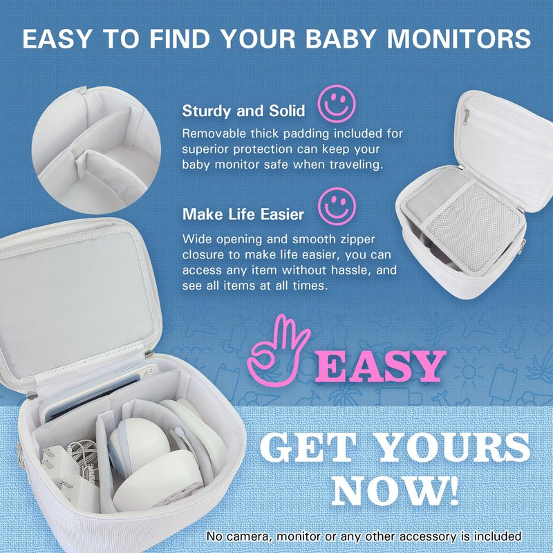 - 【Sturdy and Solid】Removable thick padding included for superior protection can keep your baby monitor safe when traveling.