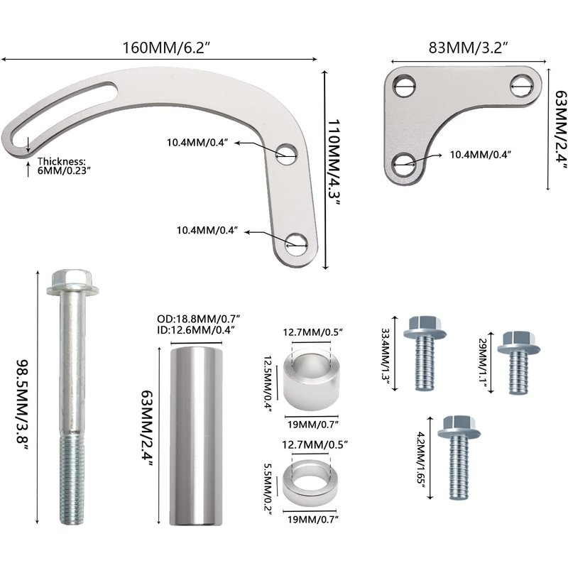 - 🌊[Installation] Mounts your power steering pump low on the driver side of your engine, using a slotted arm to maintain belt tension.