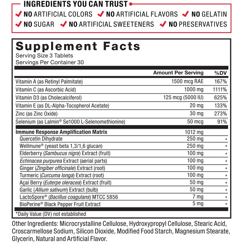 - COMPREHENSIVE IMMUNE SUPPORT: Fortify your immune health with a daily dose of time-tested antioxidants like elderberry, echinacea, and quercetin, essential vitamins and minerals, and LactoSpore, a resilient probiotic strain for year-round support.