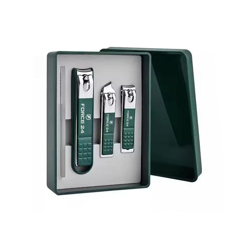Force24 Nail Cutter set --Our goal is to integrate the excellent supply chain resources of beauty tools, nail care, personal care and other beauty industry, we'll wholeheartedly provide our customers with high-quality products and services. Large Nail Clipper Sharp large nail clippers can trim thick nails. Ultra sharp stainless steel curved edge blade to fit your toe nails. Fingernail Clipper The size of finger clipper of medium size and anti-skid design can be better grasped. Meet the natural curve of nails, easier to trim nail clippers. Oblique nail clipper Oblique clippers are used to trim the ingrown nails, agnail and dead skin. It will better ensure your hygiene safety. Built to last & high quality material: This professional nail clippers are made from high-strength stainless steel to make them more durable and sharper. The toe nail clippers cut smoothly and preventing nail splitting, ingrown toenails and fungal infection. Nail Clippers Set – Force24 Nail Clipper Set includes a large toenail clipper, a medium fingernail clipper , glass file and a slant edge clipper come in a nice box. Multiple sizes of nail clippers give you more options.