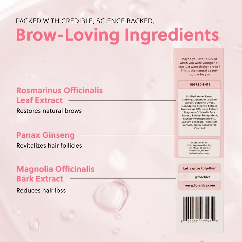 - Infused with a powerful combination of key, performance-based botanicals such as magnolia bark extract, panax ginseng, and rosmarinus officinalis extract that restore natural brows, prevent follicle aging, and promote fluffier, thicker brows