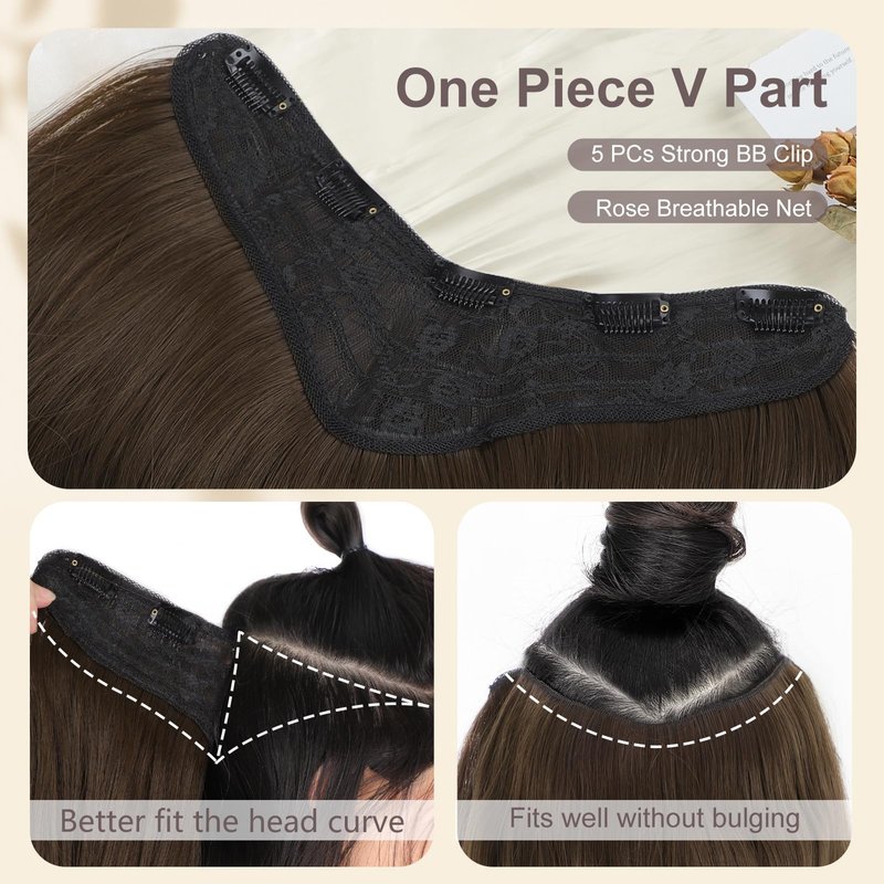FORCUTEU Clip in Hair Extensions Long Layered Straight Wavy V-Shaped Hair Extension One Piece Milk Tea Brown Hair Extensions with 5 Clips for Women Daily Use