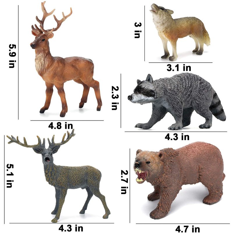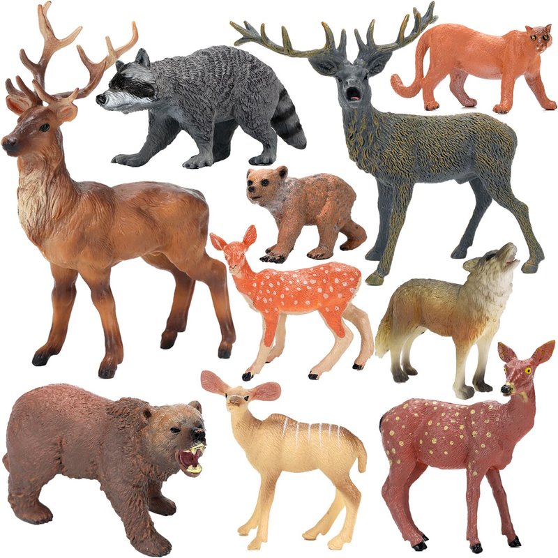 - FORSET Animal Playset includes 1 ELK, 1 Buck, 1 Doe, 1 Fawn, 1 Brown Bear, 1 Cub bear, 1 Wolf, 1 Lynx, 1 Raccoon, 1 Greater Kudu. Kids would like to have a party with different varieties of North American Forest Animal Figurines.