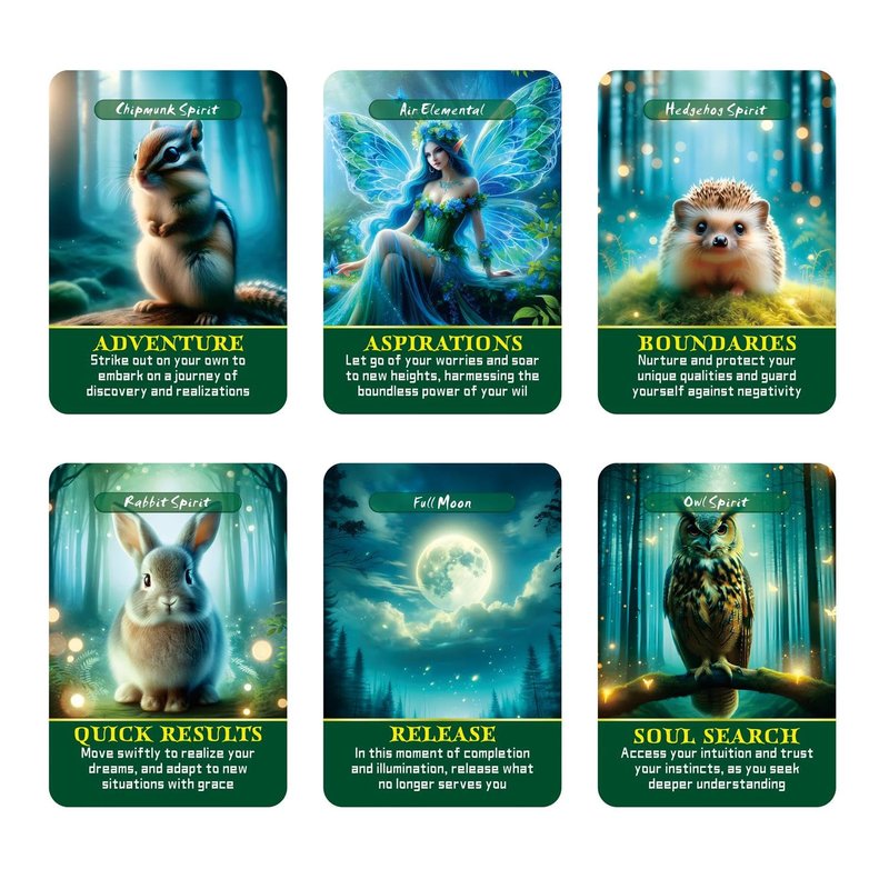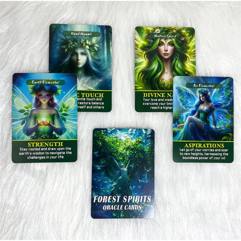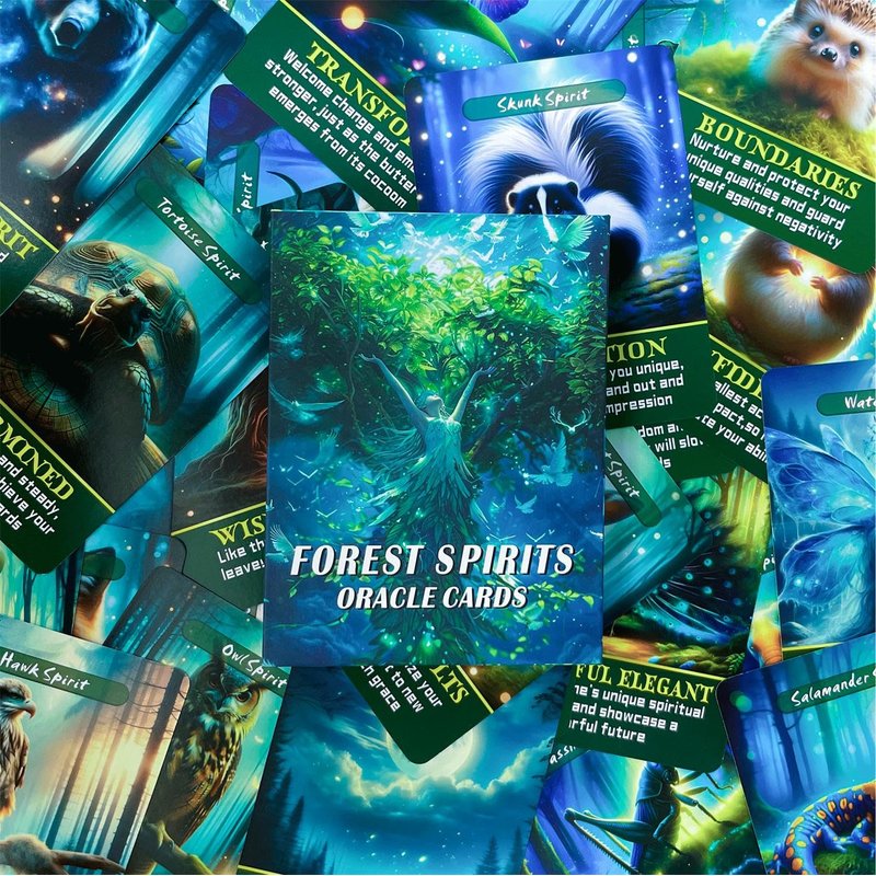 - 【Forest Spirits Oracle Cards】48 unique information and healing gifts containing these mysterious forest residents guide you to gain a deeper understanding of yourself and the world around you. The whispers of elves, elements, and forest creatures awaken your senses, reconnecting you to a magical natural world
