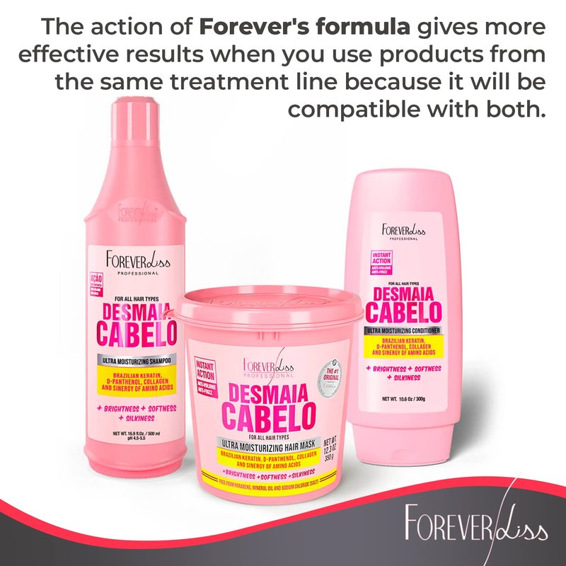 Forever Liss | Desmaia Cabelo Shampoo with Keratin Brazilian and D'Panthenol | Moisturizing Cleansing, Frizz and volume reduction | Smooth effect, Soft and Shiny Hair | 16.9 Fl.Oz (500ml)