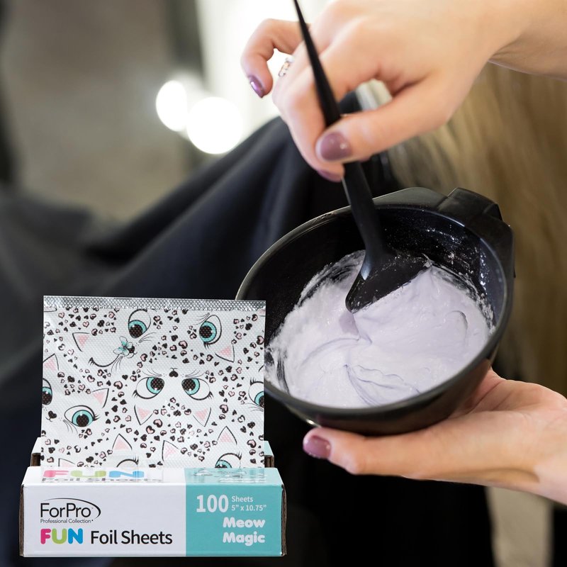 ForPro FUN Meow Magic 5" Foil Sheets, Aluminum Foil, Pop-Up Foil Dispenser, Hair Foils for Color Application and Highlighting Services, Food Safe, 5” W x 10.75” L, 100-Count