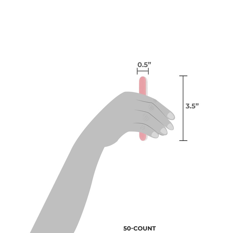 - Mini Nail File: The mini foam boards measure 3.5” L x 0.5” W. Each package contains 100 washable nail files.