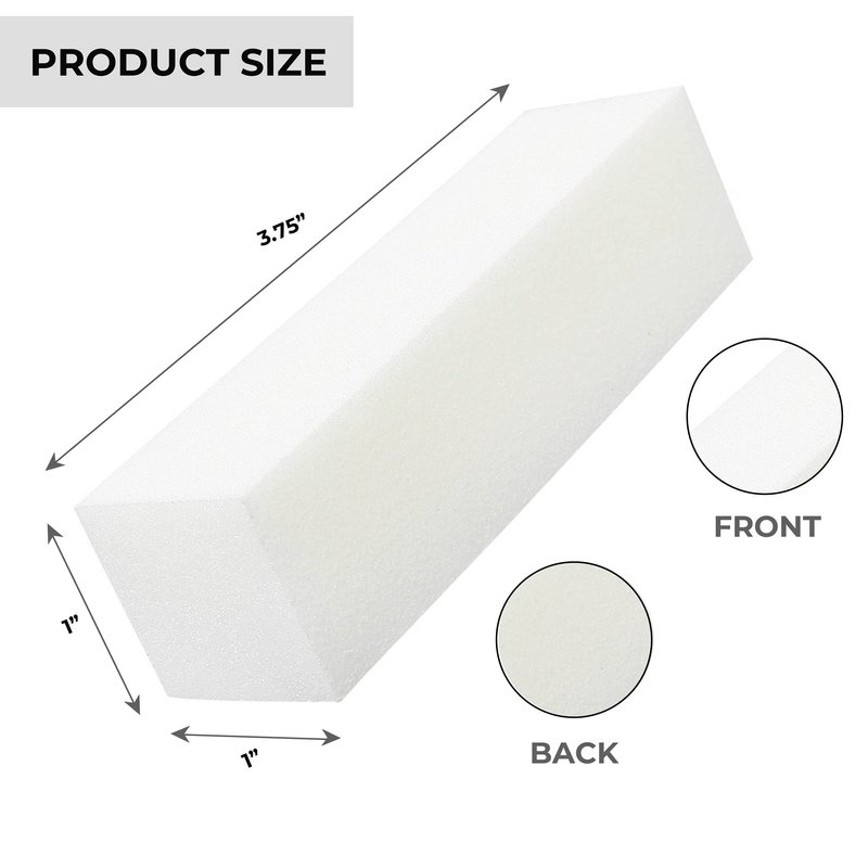 - Buffer Block: ForPro super white buffing blocks come in a 20-count box and measure 3.75" L x 1" W x 1” H each. These nail buffers are packed for convenience in clear, reusable storage containers.