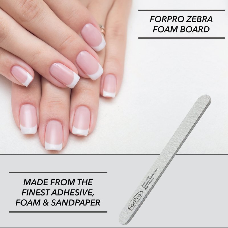 ForPro Professional Collection ForPro Zebra Foam Board, 80/80 Grit, Double-Sided Manicure Nail File, 7 inches L x .75 inches W, Black, 50 Count