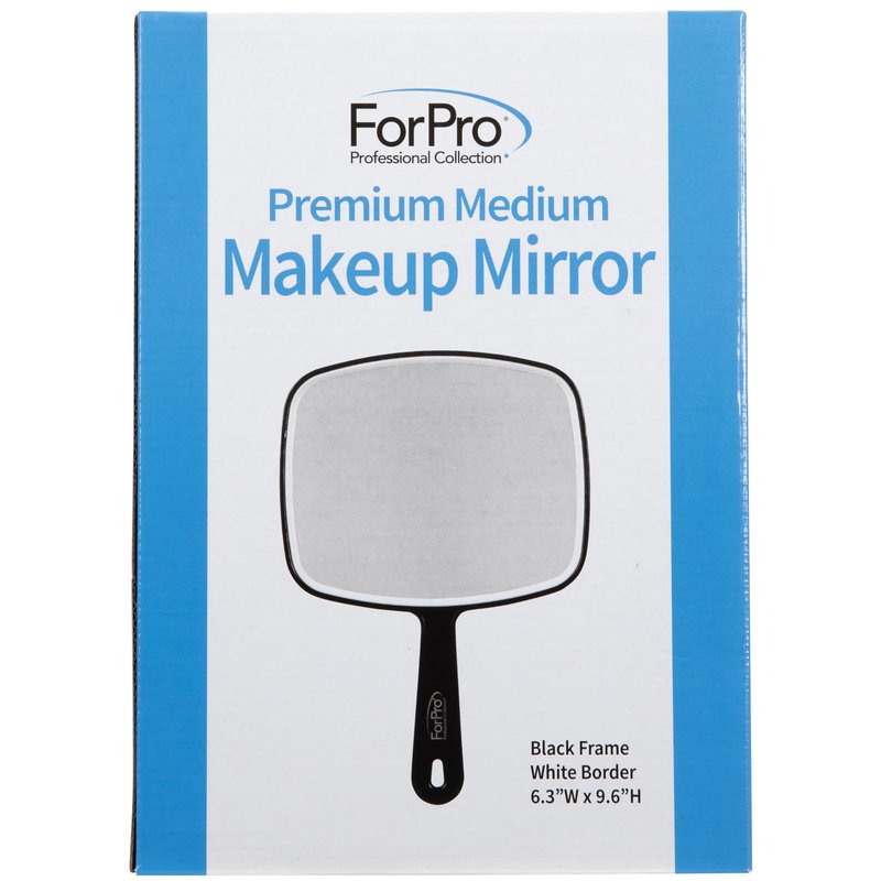 ForPro Professional Collection Premium Hand Mirror with Handle, 6.3" W x 9.6" L, Multi-Purpose Handheld Mirror with Distortion-Free Reflection, Black