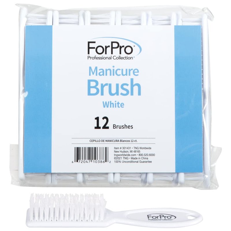 ForPro Professional Collection Premium Nail Brush, Professional Nail Scrub Brush for Cleaning Toes and Fingernails, 5.5” L, White, 12-Count