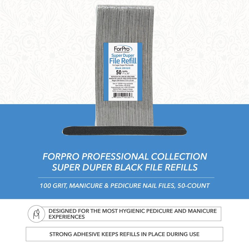 ForPro Professional Collection Super Duper File System Refills, Black, 100 Grit, Manicure Nail File, 7” L x .75“ W, 50-Count