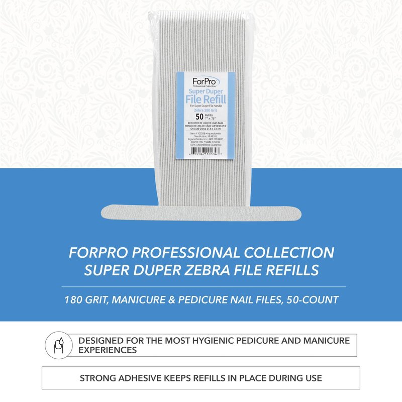 ForPro Super Duper File System Refills, Zebra, 180 Grit, Manicure Nail File Refills, 7” L x .75“ W, 50-Count