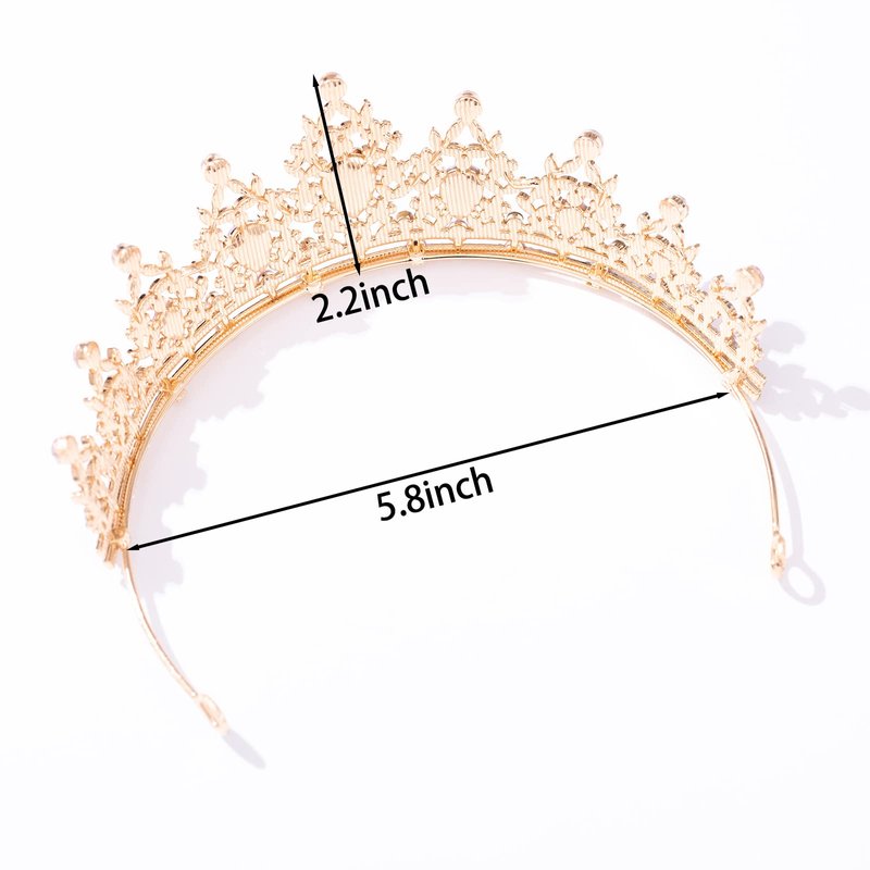 - Color-- Gold, Color retention, no fading. Size-- 5.8inch * 2.2inch. Tiara and Crowns Suitable for adult women and girls. Weight is 70g /0.15lb.