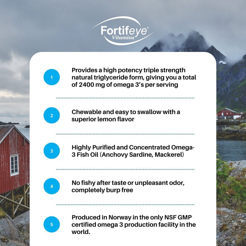 Fortifeye Vitamins Super Omega-3 Max Fish Oil, Lemon Flavor, Natural Triglyceride, 1200 EPA / 900 DHA Per Serv.- 30 Day, 60 Max Softgel Capsules