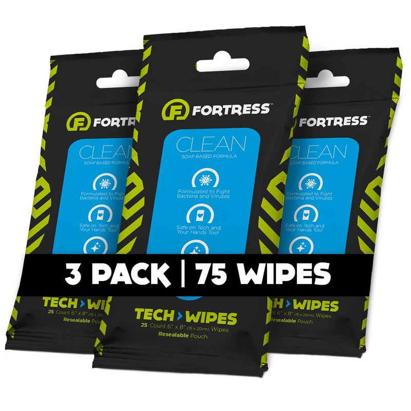 Fortress Electronic Wipes (25 ct, Pack of 3) To-Go Tech Wipes for Cell Phones, Keyboards, Cameras, Car Interior and More [Travel Size] Skin-Safe Cleaning Wipes, Phone Wipes