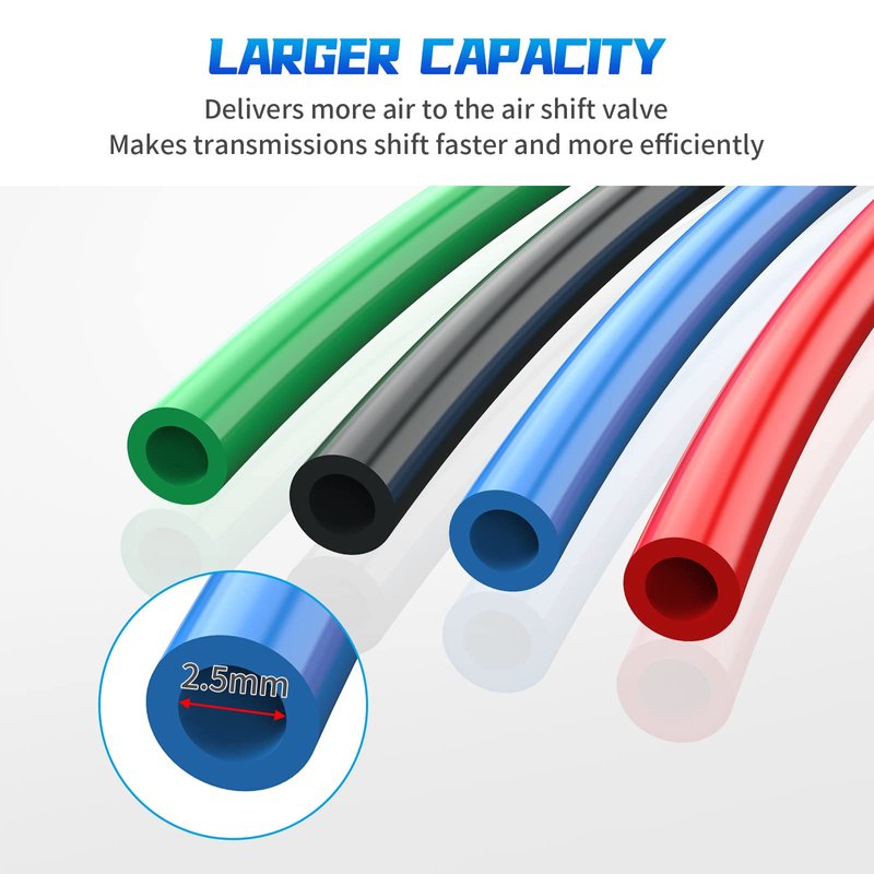 - 🚕【New Air Line Kit】: This shifter air line kit will update your transmission air system and make it simple for you. Replaces all fittings and updates to a high capacity 4-color air line between the shift knob and transmission valve.
