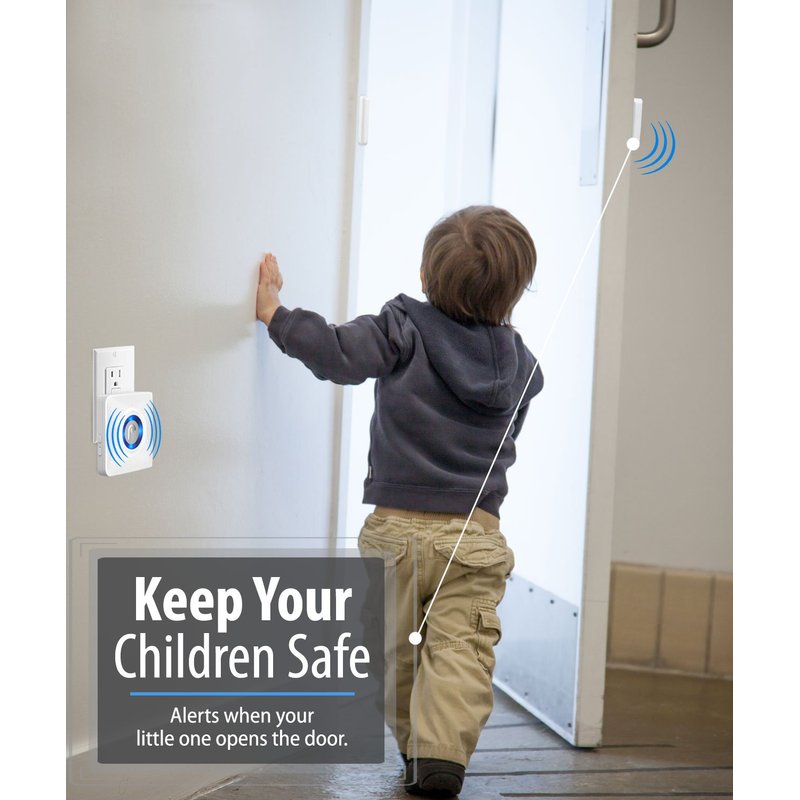 - EASY INSTALLATION] With its simple wireless plug-in and double sided tape, the wireless door and window chime sets up in seconds. It gives you the opportunity to spend your time elsewhere. All hardware is included, and ready to use.