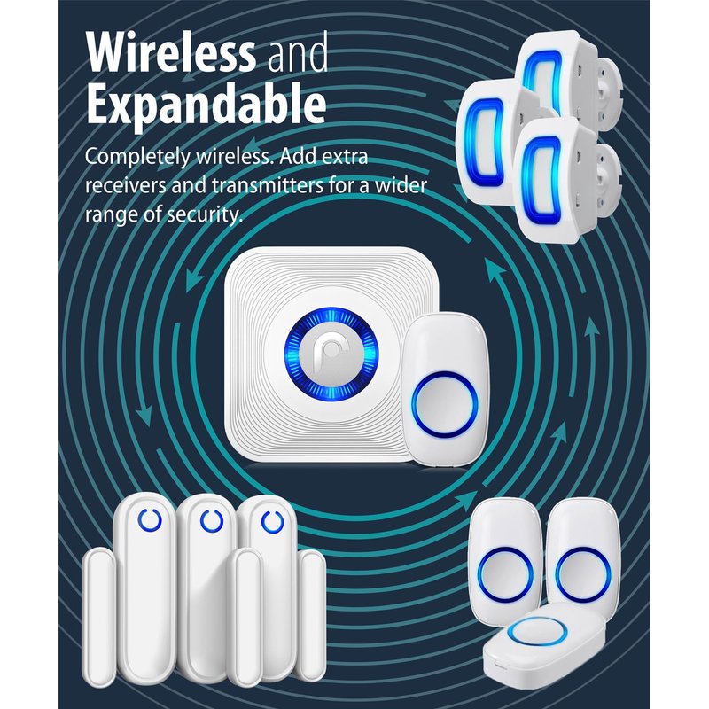 - [MONITOR THE AREAS MOST IMPORTANT TO YOU WITH WAVELINK WIRELESS DOOR CHIME] WaveLink wireless door chime offers a generous detection area of nearly 400 feet. Big enough for to cover every window and door in your house. Expand the system by pairing up to 10 receivers to one door sensor, or 10 door sensors to one receiver. The choice is yours.