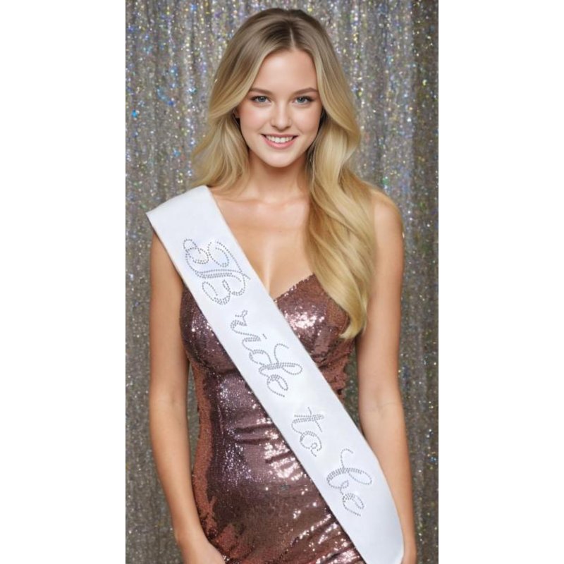 - Glittering Bridal Accessory Pair - Elevate your bachelorette party with our white rhinestone Bride To Be sash and iridescent temporary tattoo set, a sparkling pair designed for the star of the bridal show.