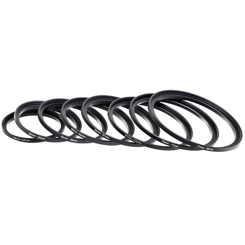 Fotasy Anodized Black Metal Filter Step Up Ring Set, Stepping Lens Adapter Rings 49-52mm 52-55mm 55-58mm 58-62mm 62-67mm 67-72mm 72-77mm 77-82mm (SRU)