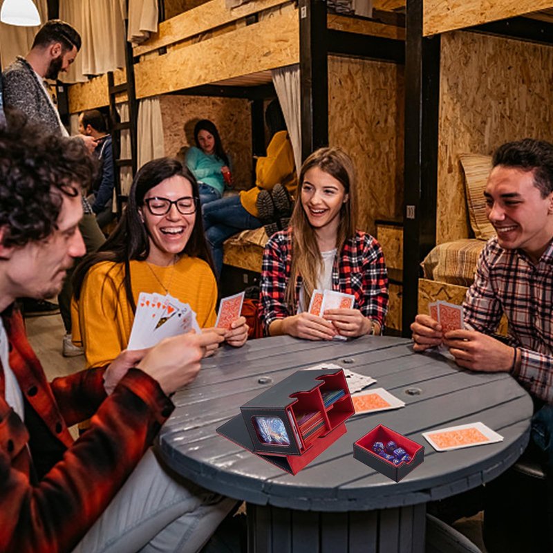 - [Dual Protection] The outer layer of the deck box mtg is designed with a waterproof non-slip texture and the inner lining is microfiber to prevent scratching the card. The PU magic the gathering deck box is rugged, waterproof and provides dual protection against dust and other particles.