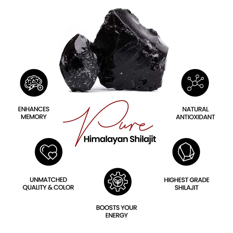 Give Your Body The Extra Care It Needs With Pure & Authentic Himalayan Shilajit!The most nutrient-rich and potent Shilajit is found predominately in Himalaya mountains which is exactly where we source ours from to bring our customer the high grade, pure, chemical-free and mineral-rich Shilajit that offers unrivaled potency and purity. Mineral Rich For Mental & Physical Care Our Shilajit is sourced from high mountain ranges in the Himalayas which is why it?s packed with a wide variety of minerals that help the body and mind running smoothing. Its packed with over 85 trace minerals as well as being a rich source of Fulvic Acid that helps the body absorb the minerals faster. Body Booster & Mental Enhancer Thanks to the high amount of trace minerals in this natural shilajit it helps the body and mind operate at an optimal level. Our organic shilajit helps in boosting energy levels, enhancing physical performance, increasing focus, and sharpening memory along with so much more! Even More Features You?ll Love: Does not contain any harmful chemicals, additives or artificial ingredients- Sourced from the Himalayan Mountains and locally extracted by professionals - Its a naturally balanced source of fulvic acid and trace minerals- Can be mixed with water or enjoyed with a warm glass of milk - Our Authentic Himalayan Shilajit is lab tested in the US for safety - Its a trace mineral complex thats rich in essential minerals and nutrients - Supports a healthy immune system along with overall health Click on the Add To Cart button now to order today and experience the amazing properties of pure black Himalayan Shilajit firsthand!