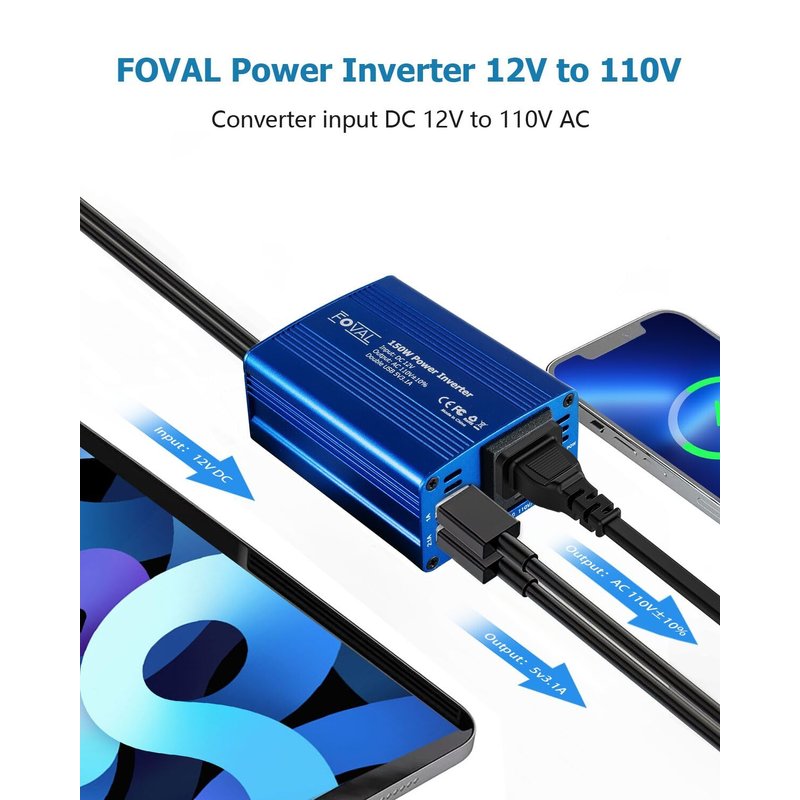 FOVAL 150W Power Inverter for Vehicles 12V DC to 110V AC Converter Car Adapter for Plug Outlet with 3.1A Dual USB Car Charger for Laptop, Road Trip Accessories
