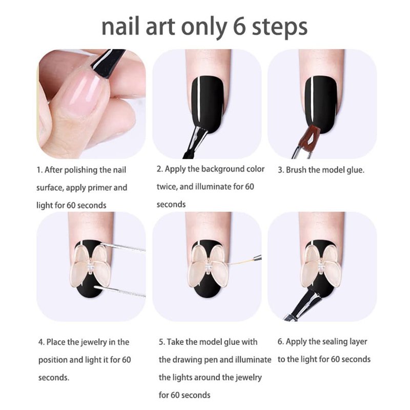 - Easy to Use: Apply a few drops of nail glue on the finished manicure and paste it onto your nails with tweezers. To make nail art more shiny and lasting, you can apply more glue around the sides or apply a top coat on the surface