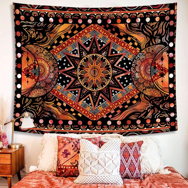 Fowocu Orange Sun and Moon Tapestry Wall Hanging, Indie Hippie Mandala Cool Wall Tapestries, Aesthetic Tapestry for Bedroom Living Room Dorm (Orange, 30'' × 40'')