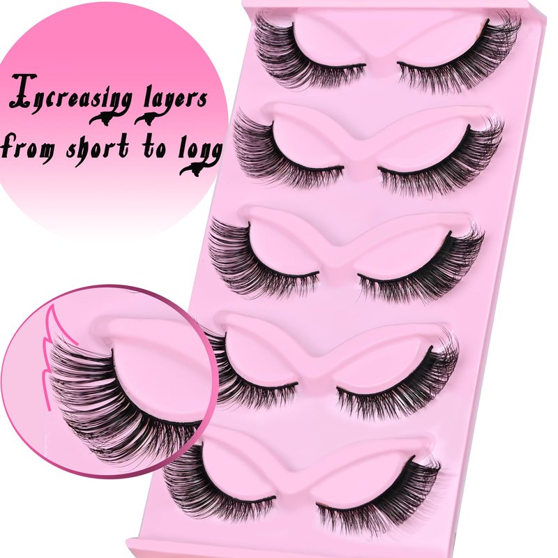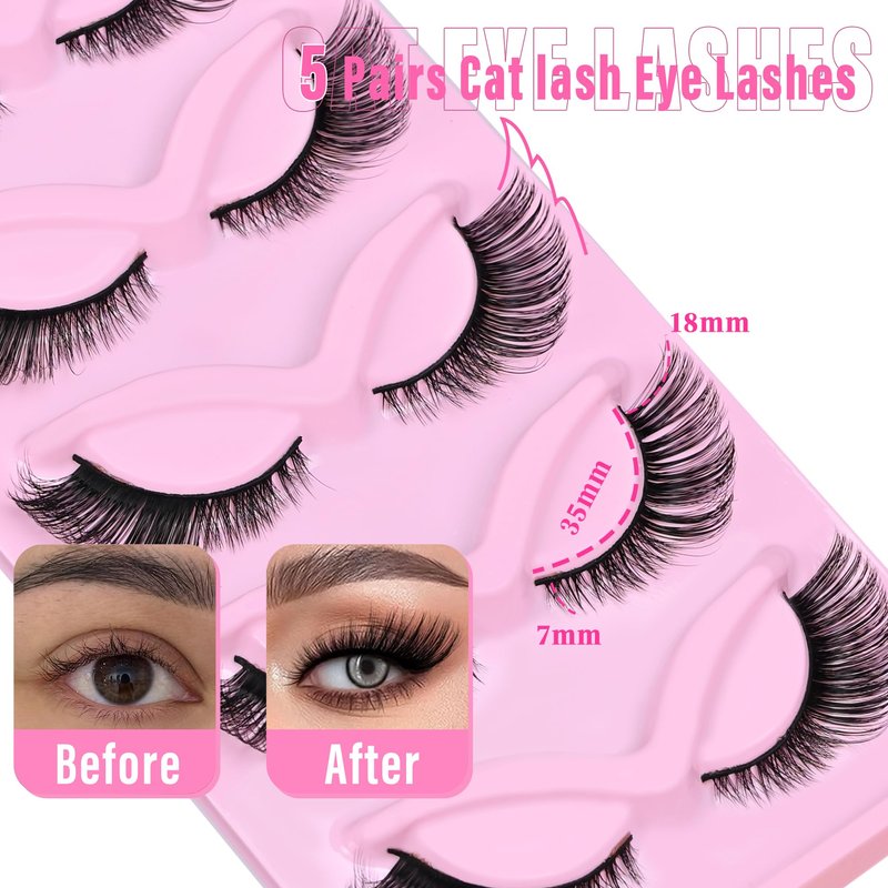 Fox Eye Lashes Fluffy Lashes Natural Eyelash Cat Eye Lashes D Curl Fake Eyelashes Pack 5 Pairs(18MM,3D Effect)
