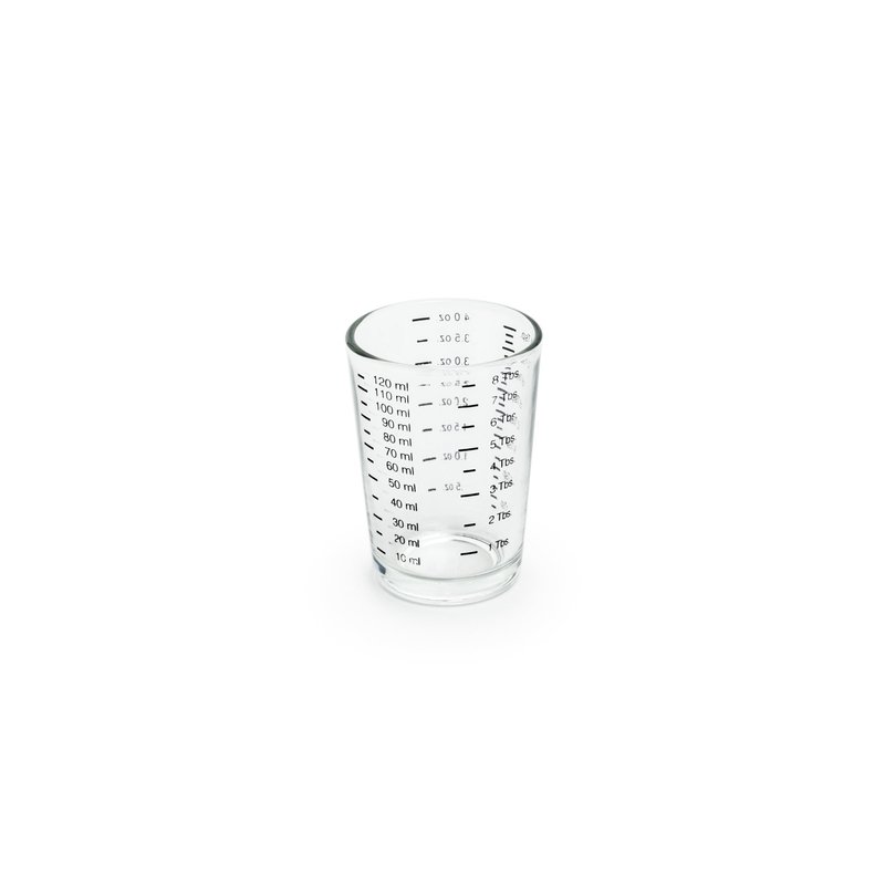 - CONVENIENT INDICATIONS: With line markings graduated in teaspoons, tablespoons, fluid ounces, and millilters all the way up to 4oz, this mini measuring glass has the information you're looking for.