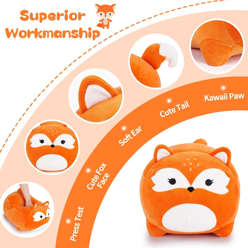 1. Cute Orange Fox stuffed animal is made of soft and comfortable material, it has a cute and elastic shape, and it can be returned to its original shape after we knead and press at will.