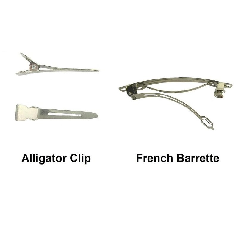 - Mounted on small french barrettes OR partially lined alligator clips.