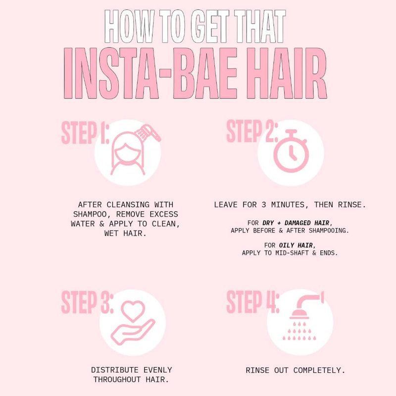 - [4 Easy Steps to Get Your Insta-Bae Hair] - After cleansing hair with shampoo, remove excess water and apply to clean wet hair. Leave for 3 minutes and then rinse. To use as a hair mask for dry hair, apply it before and after shampooing.