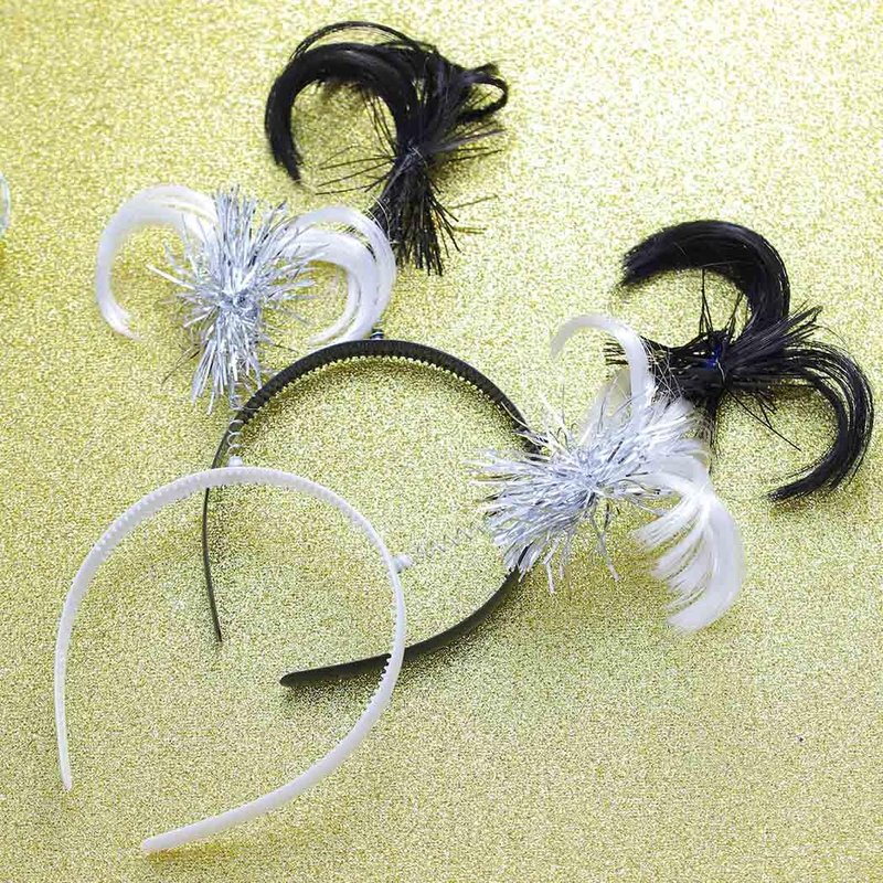 Foyte 2 Pieces Pom Pom Headband Tinsel Wrapped Ponytails Hair Hoop Head Bopper Pom Party Headpiece for Cosplay Costumes (black white)