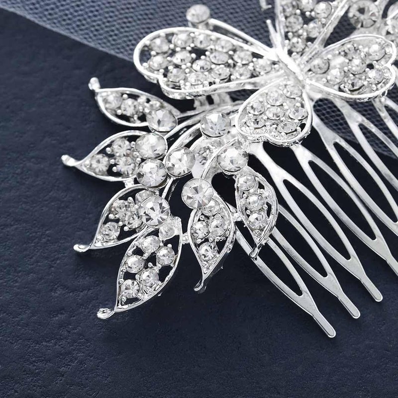 Foyte Crystal Wedding Hair Comb Rhinestone Bride headpiece Silver Butterfly hair piece Leaf Side Hair Combs for Women and Brides